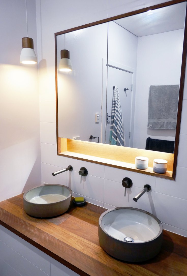 This is a story about my bathroom. I bought a very small 1960s brick cottage in Perth about ten months ago. Other than beautiful jarrah floorboards it really didn’t have much going for it. You could say it was a bit of an impulse buy after nine months of house hunting. And once I moved in I noticed all the things I should have noticed before. Like the gaps in the walls and the damaged, leaking eaves… Anyway, one of the most worn out parts of the place was the existing bathroom which had rusted fittings and water damage. So, a change was in order. And because I don’t do anything the easy way, I decided to swap the laundry and bathroom, and update the WC while I was there. A rather big exercise in the end that I definitely should have thought more about! But now that it is (nearly) done I am happy I have one space in the house that is not falling apart or damaged.