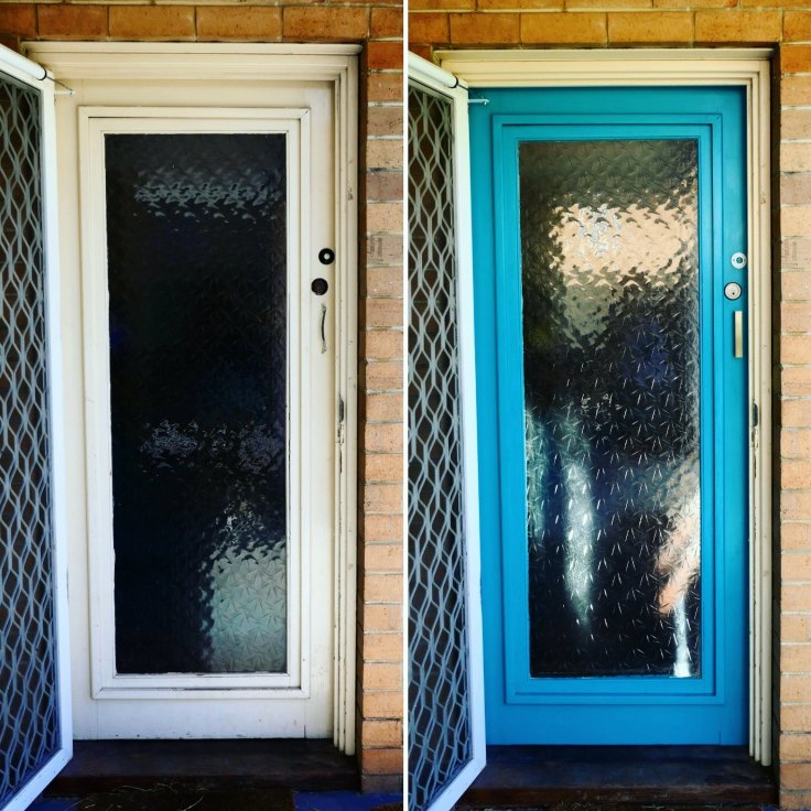 I have always wanted a brightly coloured front door. And now that I have my own house, I thought ‘why not?’ I read some online articles and watched too many episodes of Selling Houses Australia, and thought ‘yeh, I’ve got this’. Oh how wrong I was… So naive, so foolish. So for any of you thinking to do the same and quickly change your door in an afternoon, see the process I used below. Forewarned is forearmed and all that!