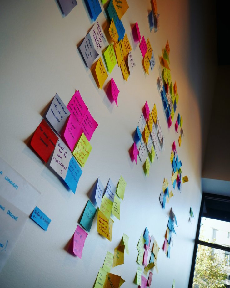 With all the data the team collected, and with the help of hundreds of Post-It notes (note to self: buy shares in Post-It notes in places where NoTosh works!), some strong threads started to pull through. The word ‘community’ kept popping up as a strong theme, with the challenge of recognising that everyone (teachers included) is a learner and we can all contribute to share learning. It was really interesting to see this concept coming through clearly from all three groups, even though each of them started off on different paths, each investigating 100 ideas in ten minutes. So from over twenty different interviews and three hundred ideas, somehow they all ended up with the same concern – how do we force connections between community and learning spaces to bring about more authentic learning and real world understanding?