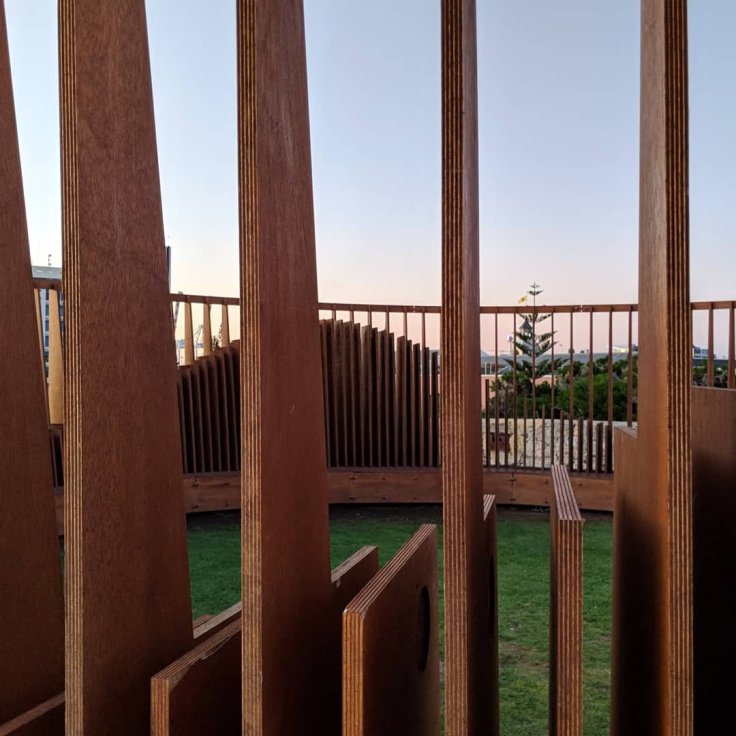 Has anyone else seen the beautiful High Tide Hub in Fremantle by Harris Architects? I finally got my first view of it proper last night. I remember HA presenting their concept of their sculpture/ place at 3 Over 4 Under last year and I saw them setting it up at the start of the Exhibition. And then I hadn’t had a chance to come back and see it until yesterday, I’m so glad it’s still there.