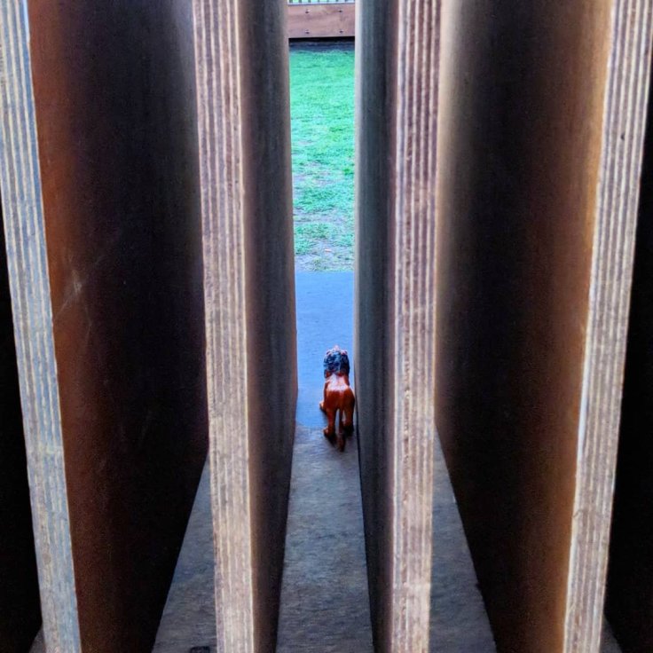 Firstly, the setting is fantastic, providing both an opportunity to see the whole piece from outside and allowing glimpses through to the space within. This feeling of it being both spacious and intimate at the same time created a moment to reflect, and I liked the scale used here to convey this feeling, not too big and not too small…