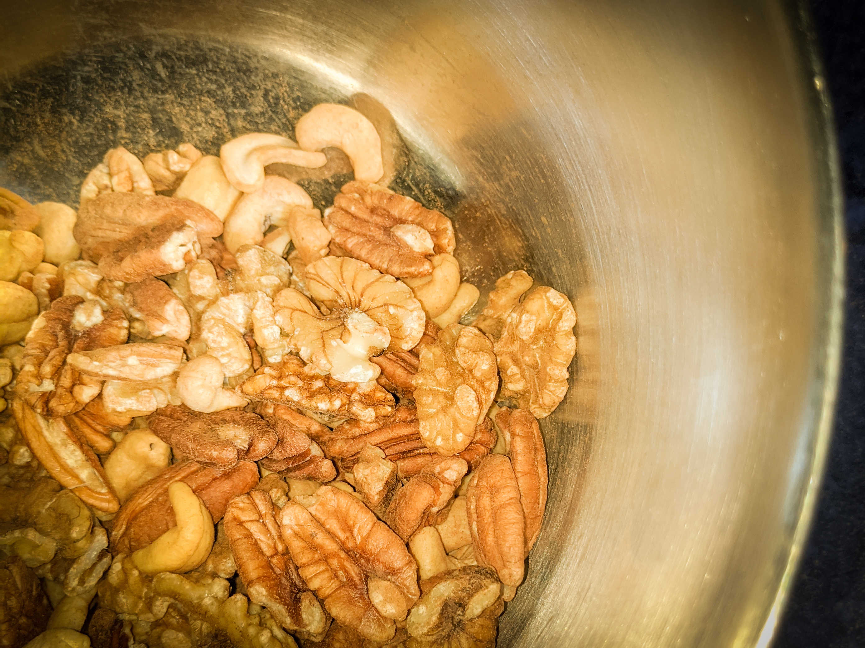 2. Mix the nuts in a bowl and add the spices. Mix well.