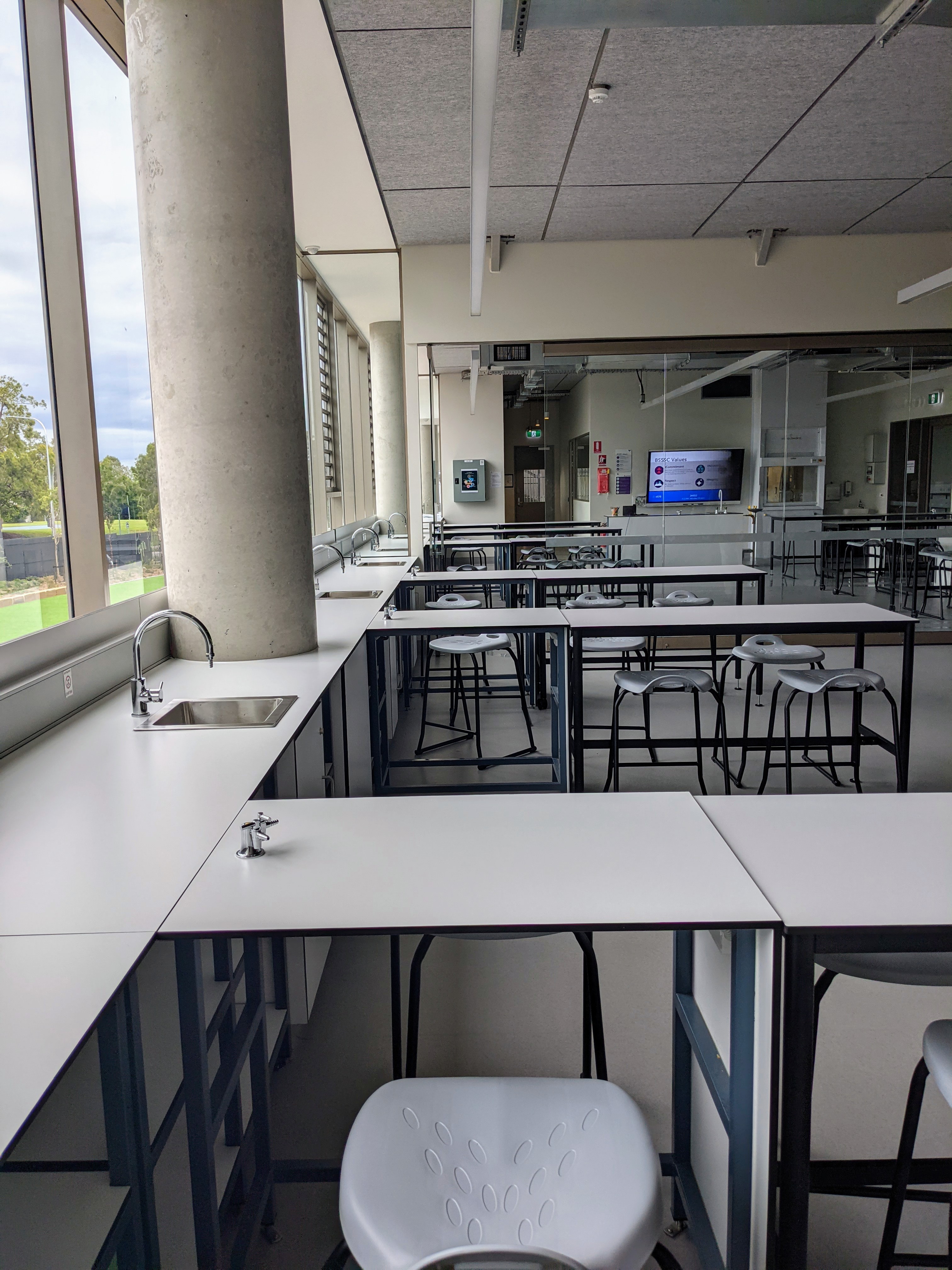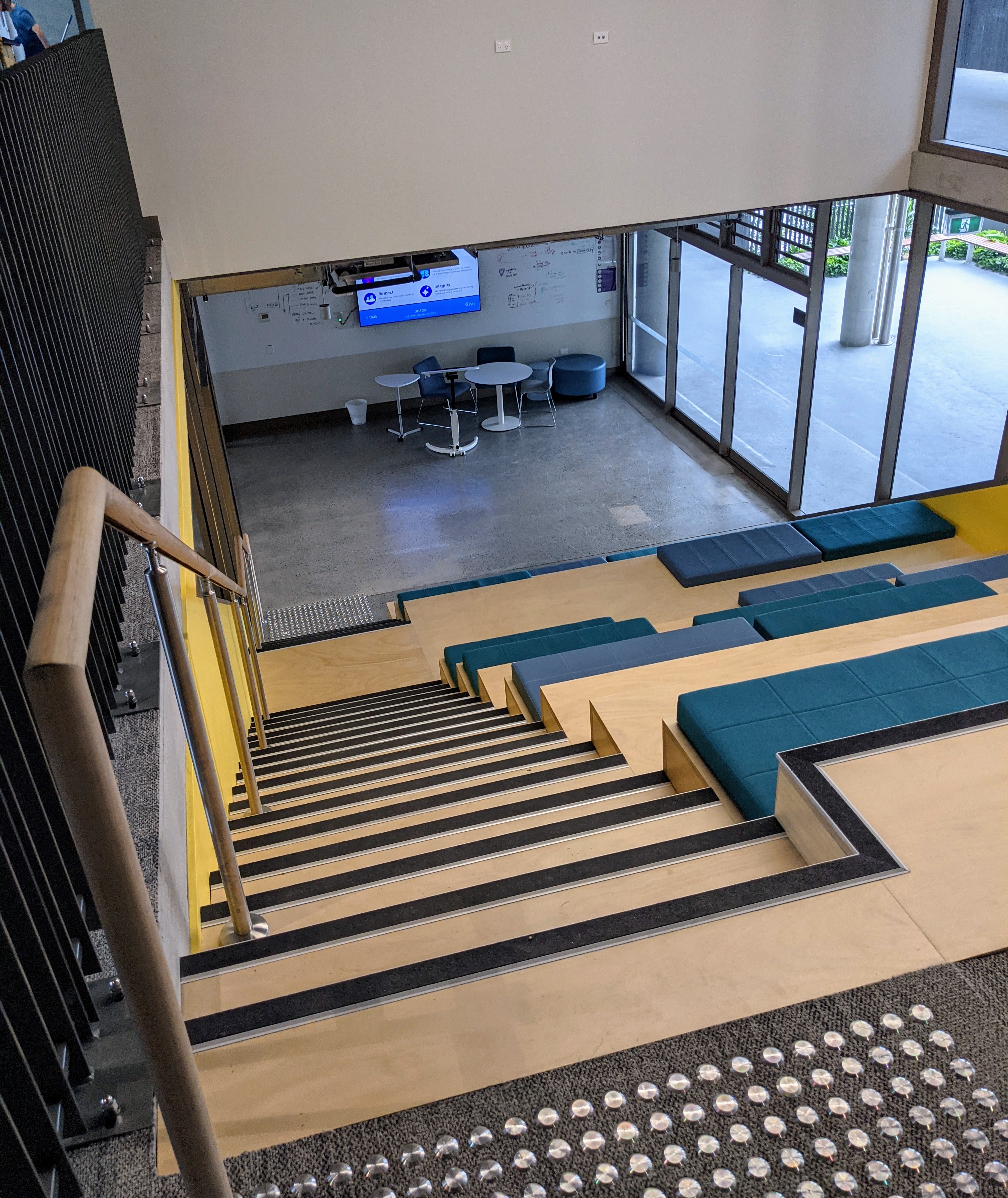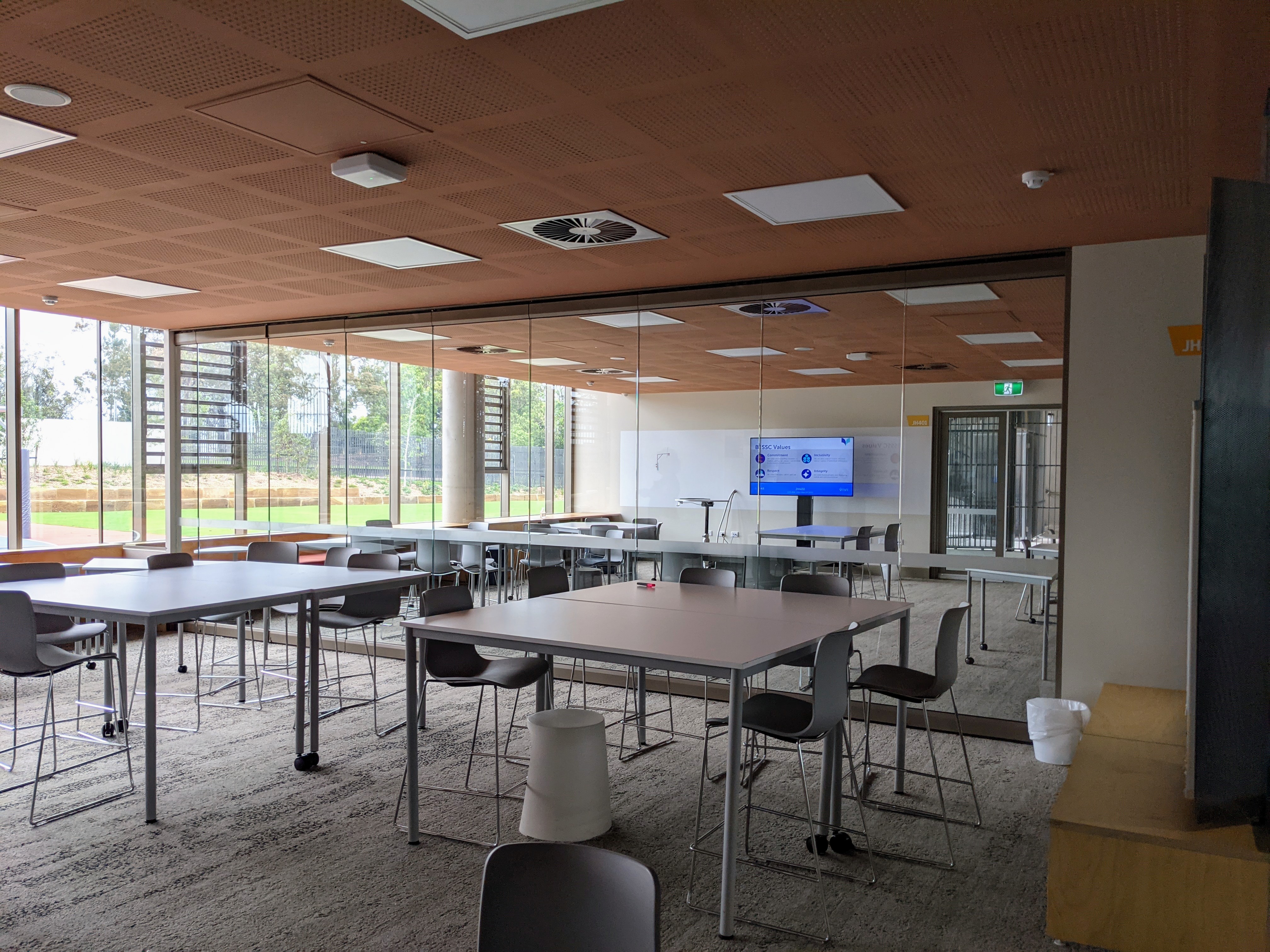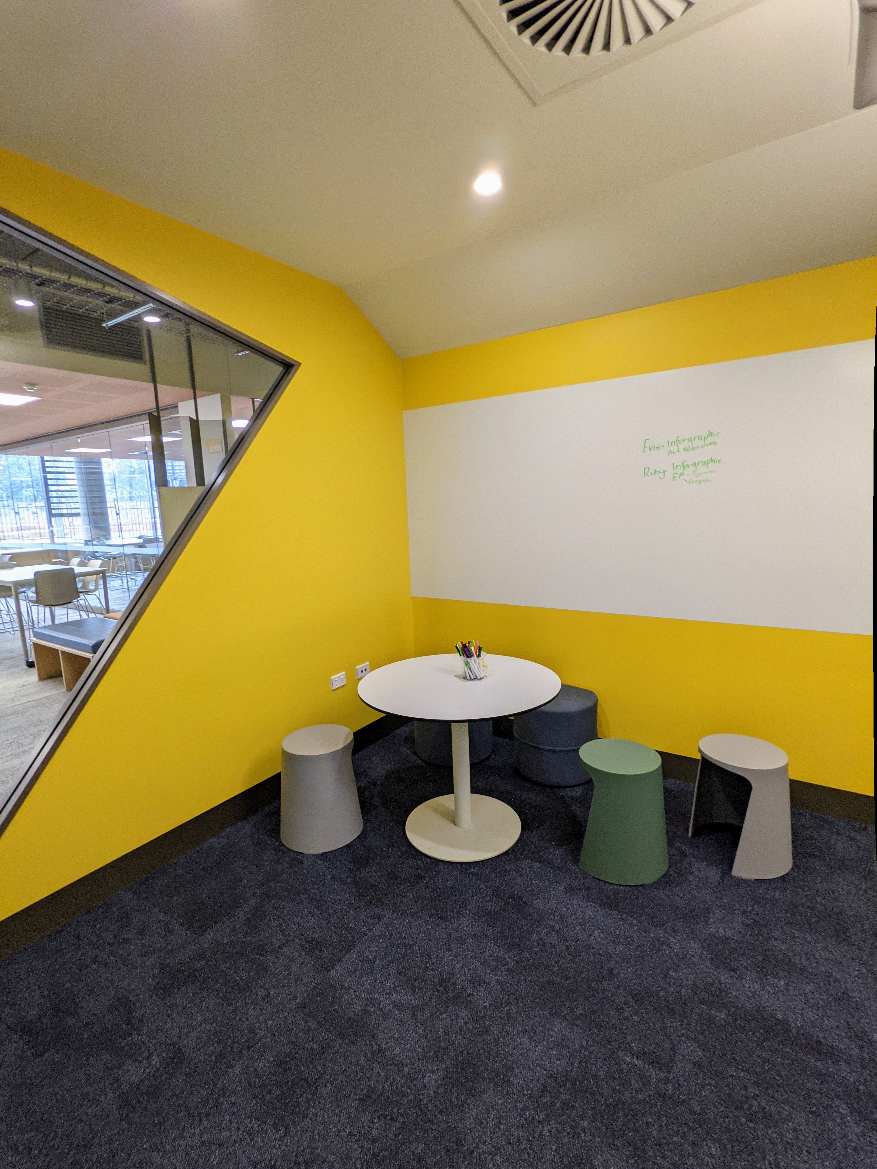 It was so wonderful and heartening to see a collaborative learning model being used for this secondary school. Utilising a range of small and large spaces linked across two levels via a terrace seating stair provides so much opportunity for students to explore and engage in creative environments. This is not something typically done in government school environments so it is so promising to see the government leading the response in this school, and the Principal espousing how well the various settings are being used as expected.