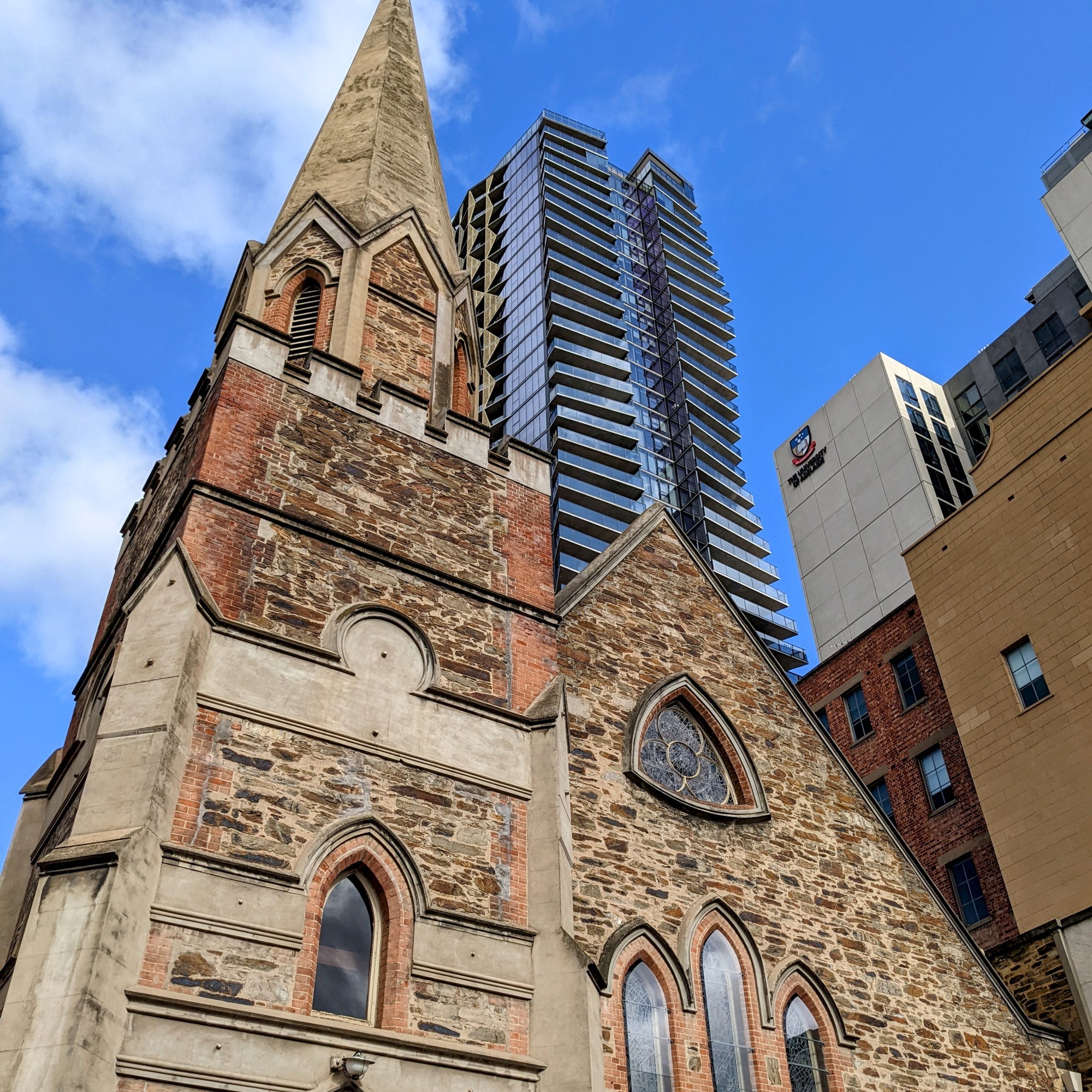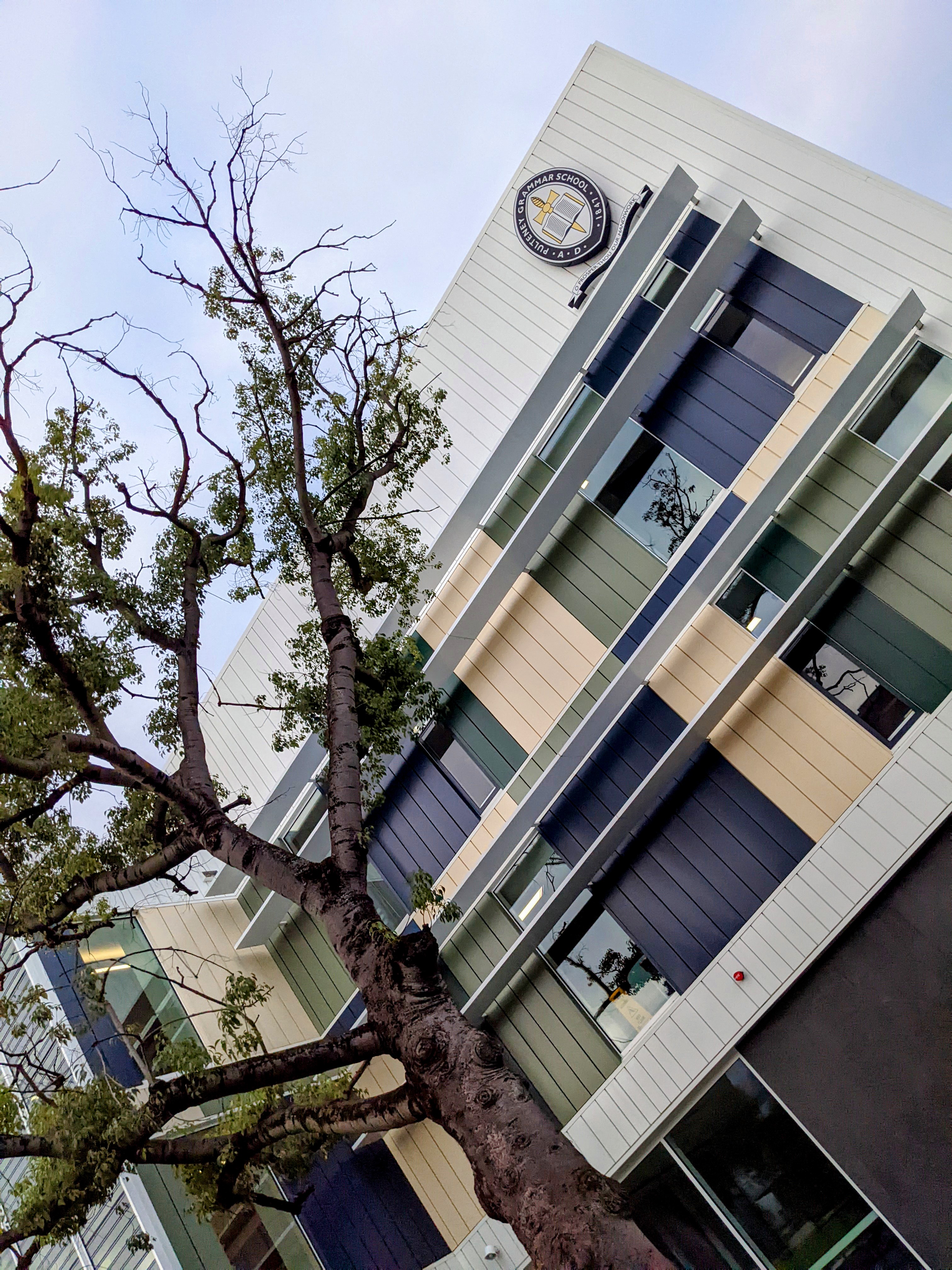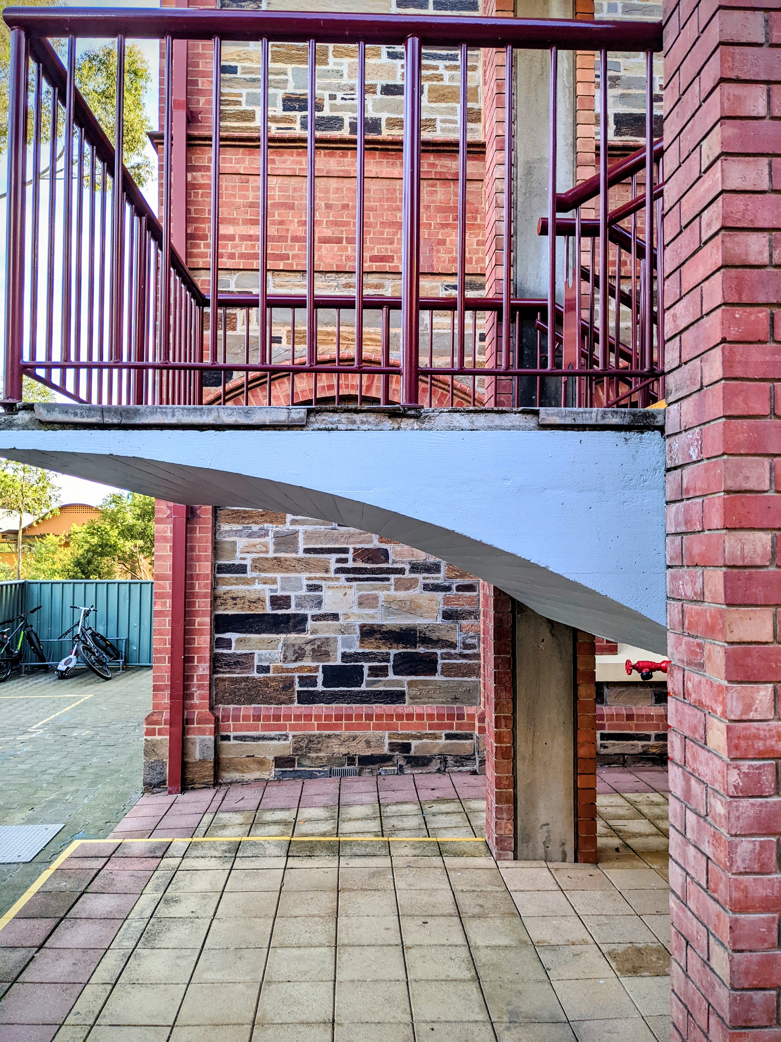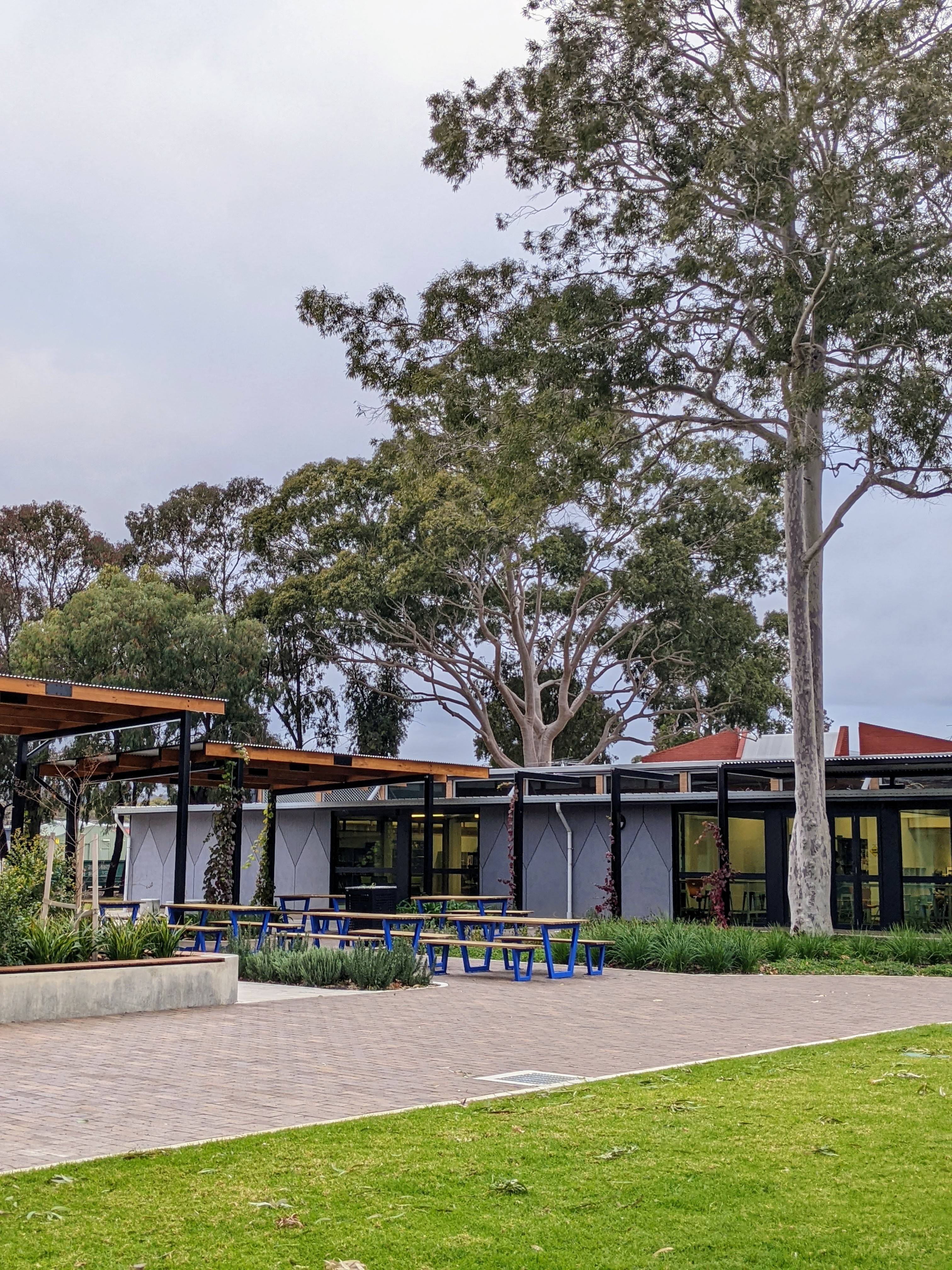 After some fantastic workshops learning about how we can better integrate the 2015 Sustainable Development Goals into our schools and learning a new phrase, heuragogy via Jacque and Lori from Cognition Education (which will probably need a whole nother article of its own), I was lucky to head off to three site visits in the inner south of Adelaide. First up we visited Cabra Dominican College, where a new jewel-like Music Centre designed by Russell & Yelland provides a linkage point between a range of multi-leveled buildings on site, and reflects the College’s history with a mirrored wall positioned opposite their heritage-listed convent building. The new building cleverly linked across to the heritage building, near-kissing the traditional stone and brick façade. On the other side of the campus we discovered the College’s new arts and technology precinct currently under construction, which looks like it is going to be a wonderful additional to the learning opportunities on site.
