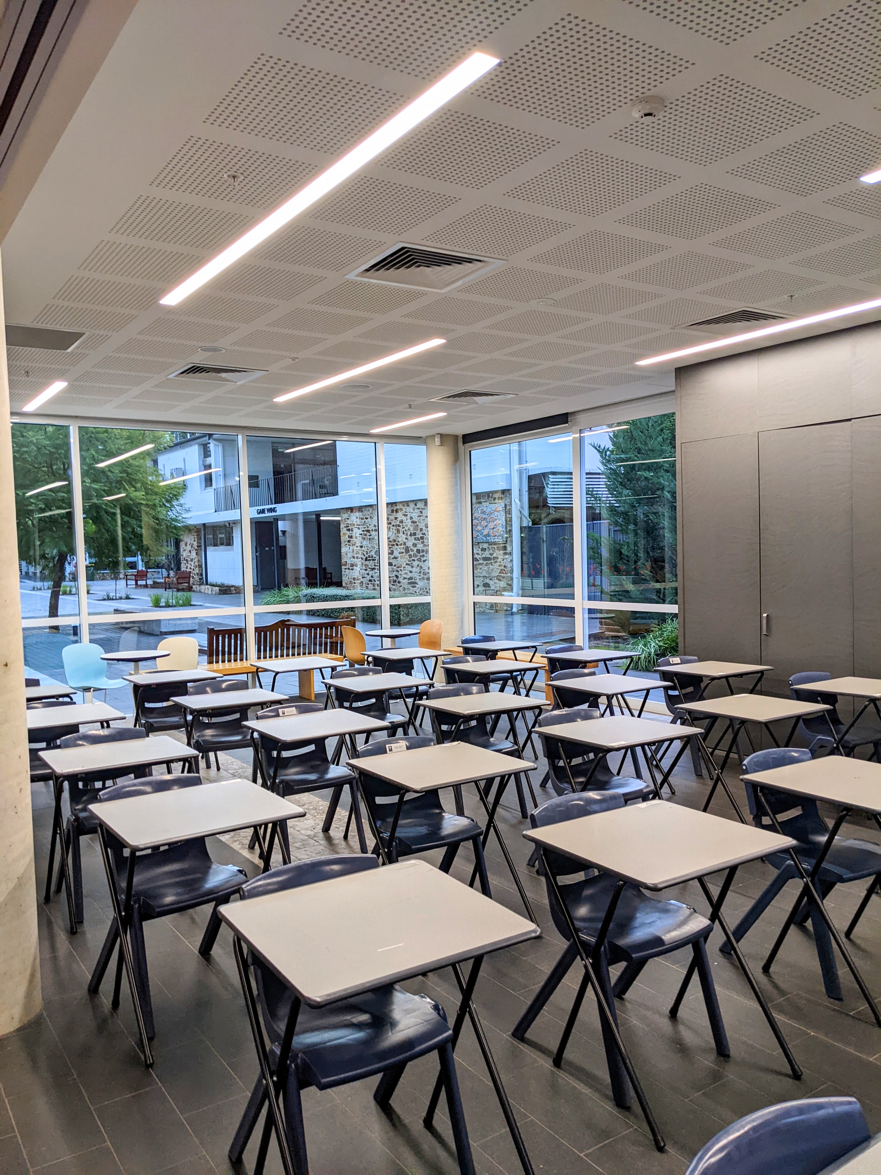 Our final site visit for day one was to Pulteney Grammar where we explored JPE Design Studio’s new Middle School featuring a large flexible transparent space linking the numerous disparate buildings on site. Overlooking a vast landscaped quadrangle, the new space provides a flexible learning area on each floor between three pairs of classrooms, where students can relax and study. The dispersed lockers through the space help minimise unfavourable social behaviours and the high levels of visibility with glazed sliding doors ensure a safe overlooked environment.