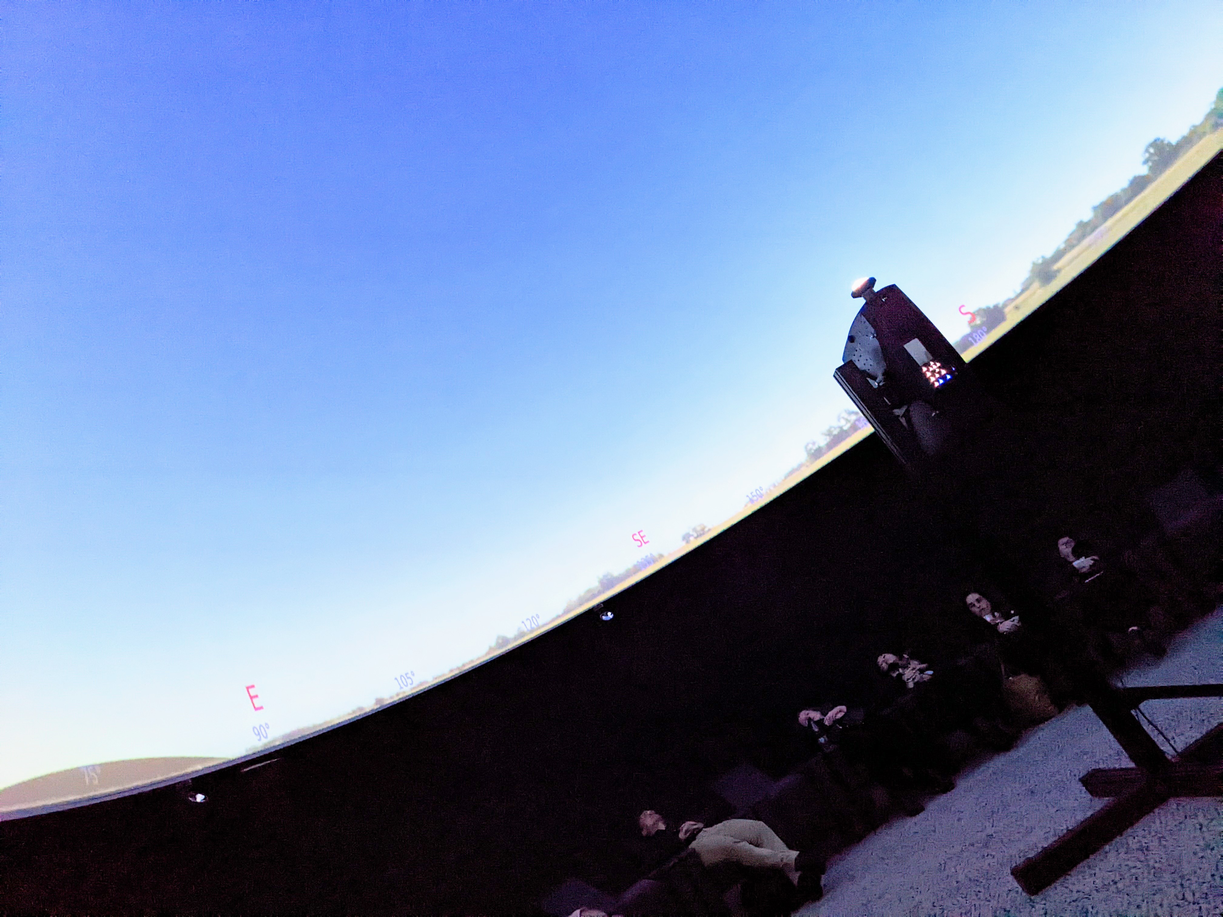 After these two adventures we still had one more other-worldly encounter to experience before heading back to the bus. On the way to the new Performing Arts theatrette, we found ourselves in a planetarium. Lying back in very student-sized chairs under the large dome, we were led through the night sky, identifying constellations and tracking the movement of the planets. It is incredible that this school has these facilities on site – what an amazing space for students to learn.