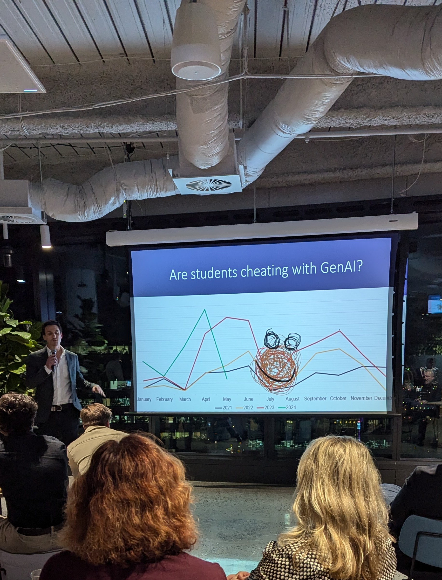 After a much needed break where I had some great personal discussions with my table mates around how people are using AI at the moment, we heard from Associate Professor Jason Lodge from UQ who reinforced the idea of understanding what education is by sharing his research into how university students are currently using AI. I was surprised 1/3 of students use it regularly, while 1/3 don’t use it at all, particularly those who are scared it may go against them in their scoring. He also left us with the thought that if an assigned task can all be completed by AI, then is the task the right task to be assessing our students thoughts processes and understanding?