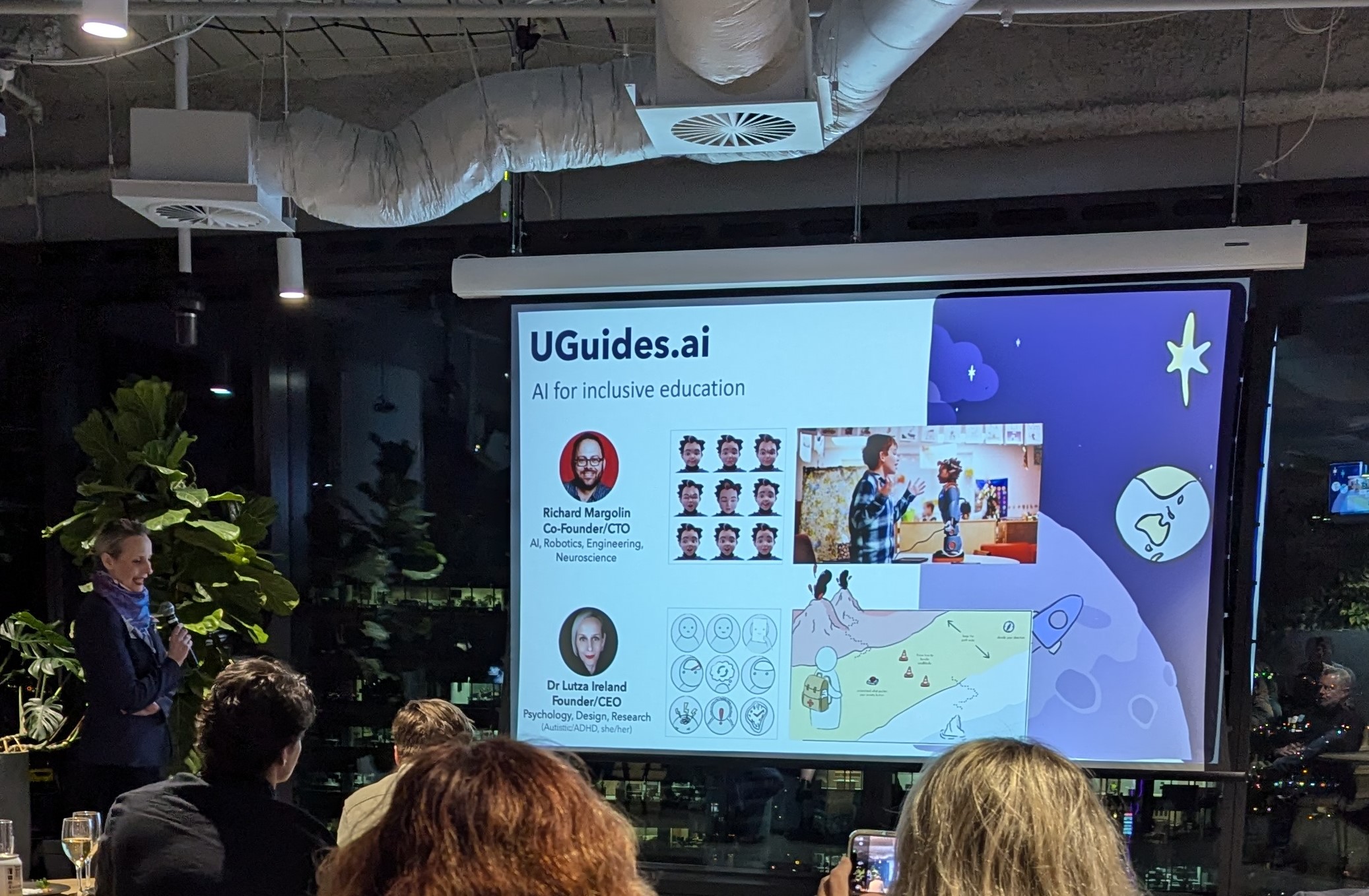 Next we heard from David Beard of Ariel Care, sharing his really, really interesting work improving patient care through technology, particularly for residents who are bed-bound. Ariel Care’s planned technology allows patients to use what they have access to, for example eye movement only, to control their environment, and give them back some agency into how they interact with their surroundings. They are also investigating how to increase social networks amongst their high-care residents through more equitable access to technology. Ariel Care is doing incredible work and it was so fantastic to hear about the benefits of technology to really change people’s lives. Please go check this out more.