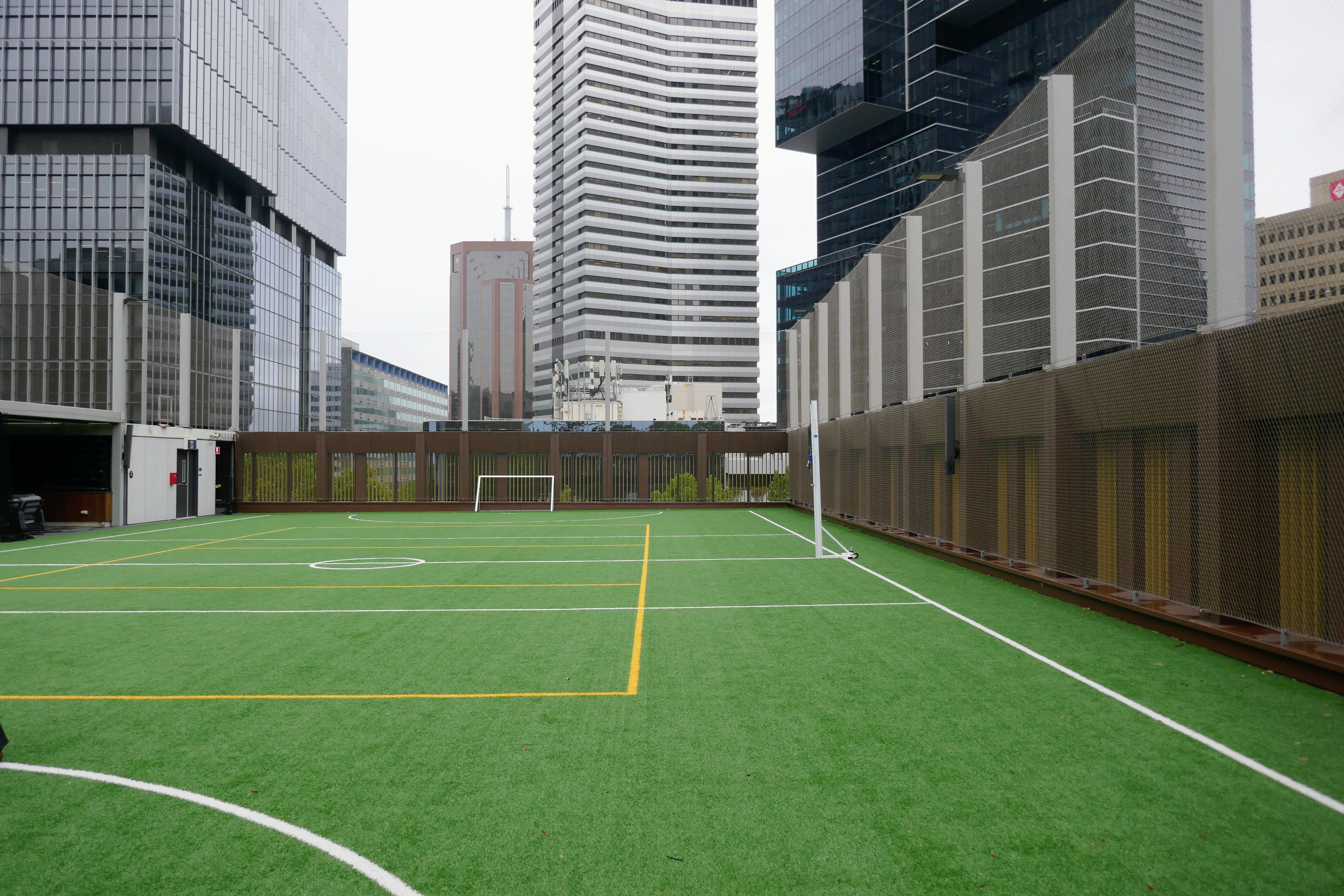 Spread across five stories, the learning spaces are sandwiched between an open air sports court on the rooftop, and a covered timber-lined in-ground sports court on the lowest level. Although being completely submerged, this space still had an effective sense of light borrowed through the gym above. I really liked the wall artwork, proudly showing enlarged images of previous students playing sports across the campus. It was a great way to connect the legacy with the future.