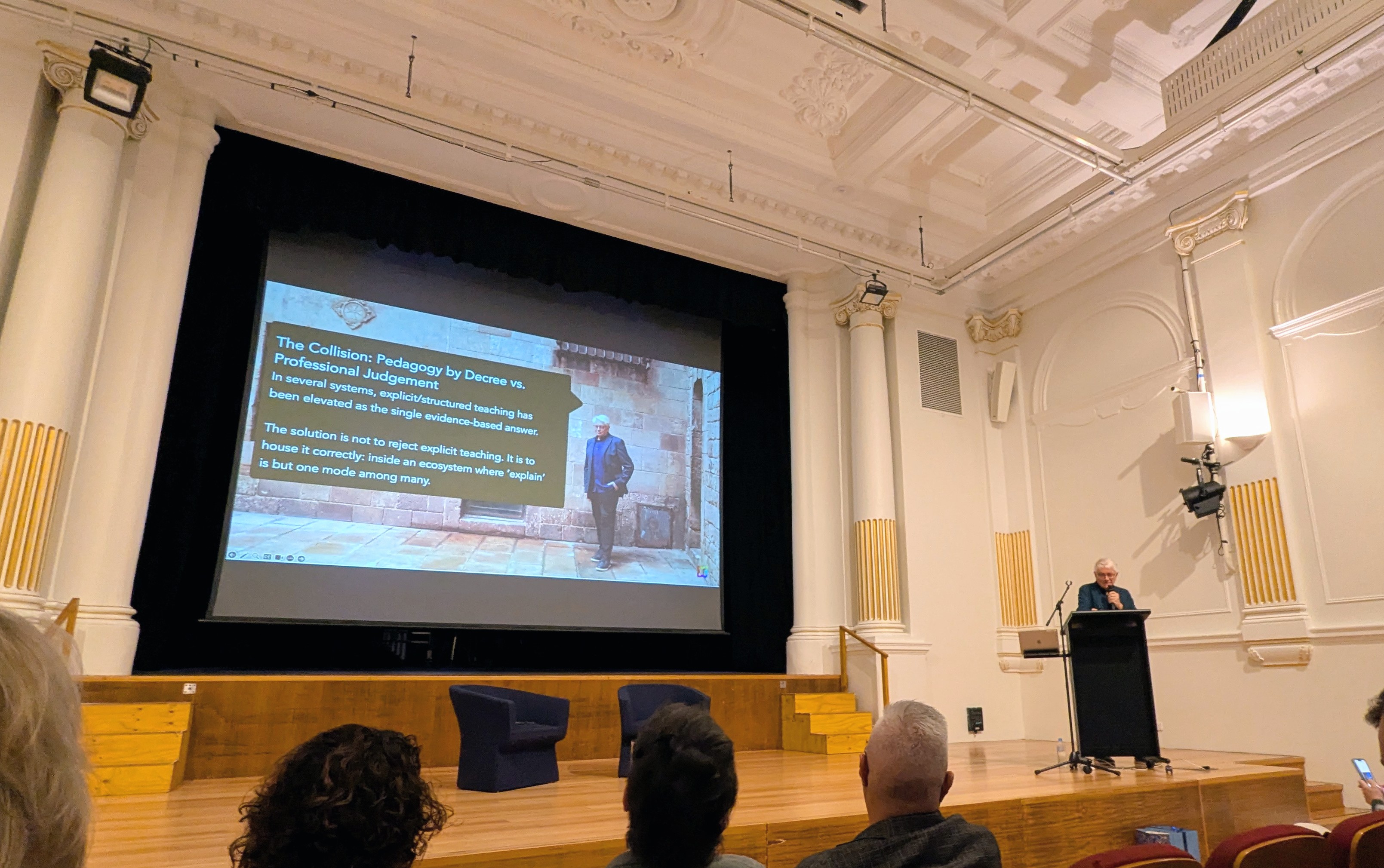 Stephen encouraged us to think of a learning environment as a transdisciplinary, democratised human-centred ecosystem with the aspiration to “imagine schools as engines of capability, creativity, belonging and public value.” While he shared many provocations through the session that encouraged some great conversations amongst our seat-mates, I particularly liked these: