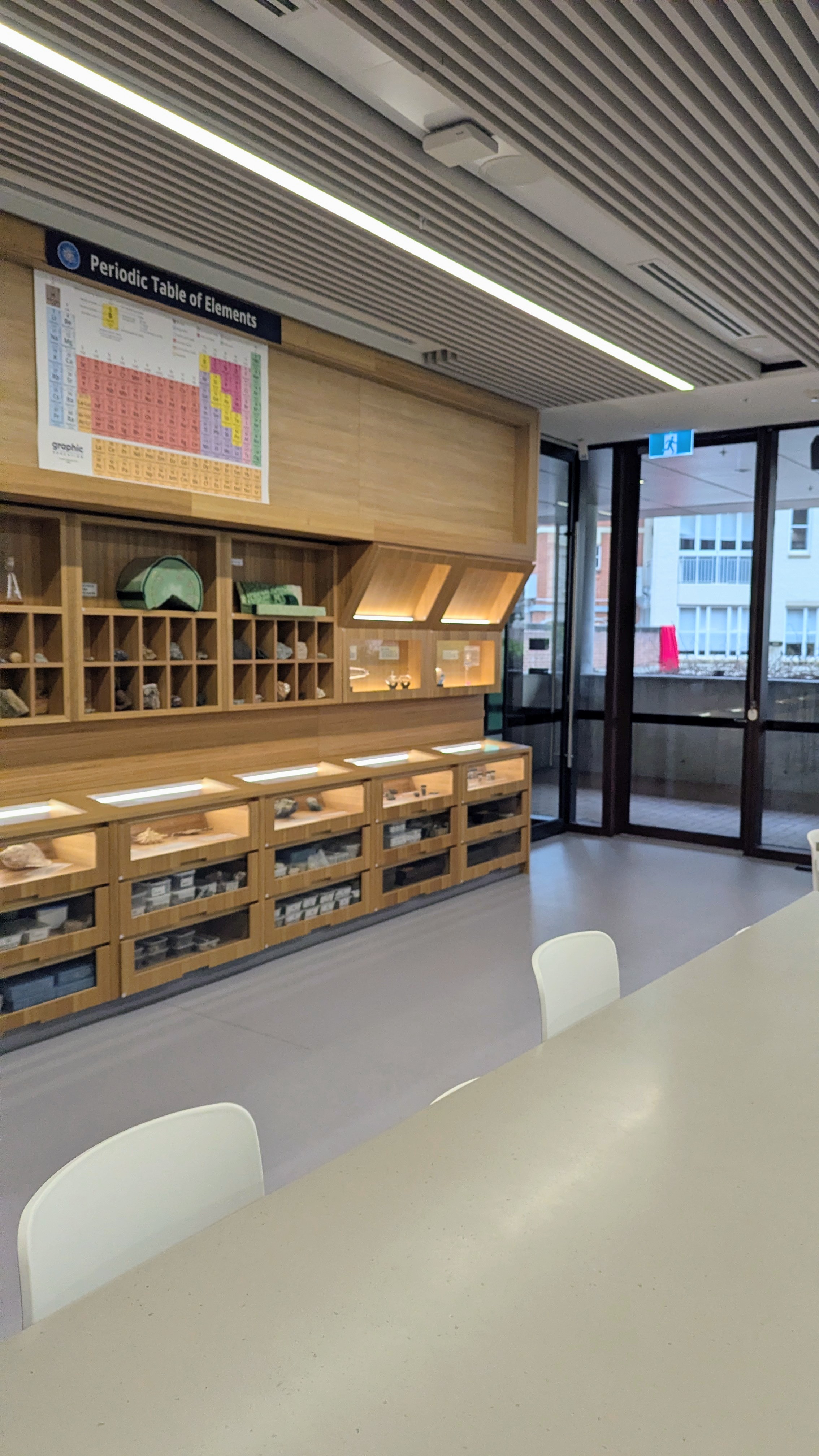 Our second visit of the day was to the Scientia Terrace at Monte Sant’ Angelo Mercy College by Hayball. Another building packing a punch over multiple levels on a really tight site, it was great to see this award-winning building in action. The custom-designed joinery was incredible and added to the tailored nature of the spaces, with places for scientific display and inquiry, collaboration and individual study, and presentation and creation. An abundance of screens and whiteboards for working out celebrated learning on display across the building.